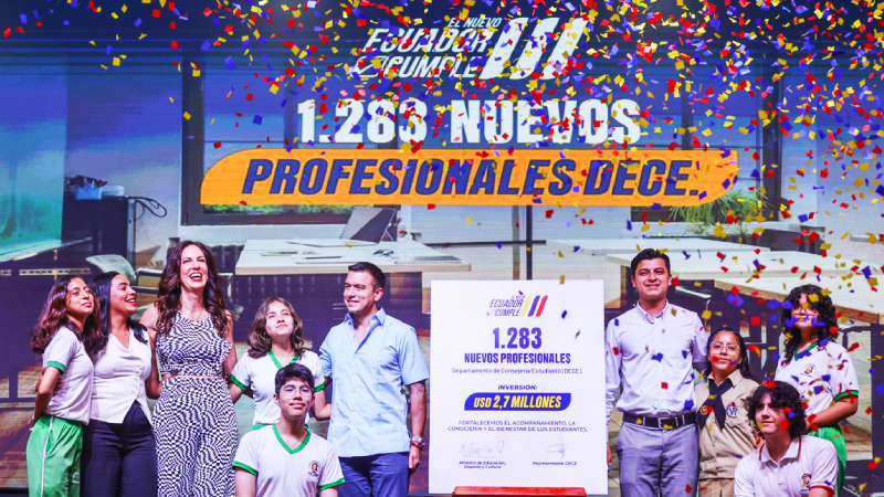 Esta acción, impulsada por el Ejecutivo a través del Ministerio de Educación, Deporte y Cultura (MINEDEC) y que forma parte del proceso de fortalecimiento institucional, busca ampliar la presencia de estos equipos en más establecimientos educativos fiscales. “Este proceso, que había estado detenido desde 2016, vuelve a ponerse en marcha. Y lo hace con una visión renovada: garantizar un acompañamiento integral para nuestros estudiantes, que atienda no solo su rendimiento académico, sino también su bienestar emocional, social y familiar”, dijo Noboa.