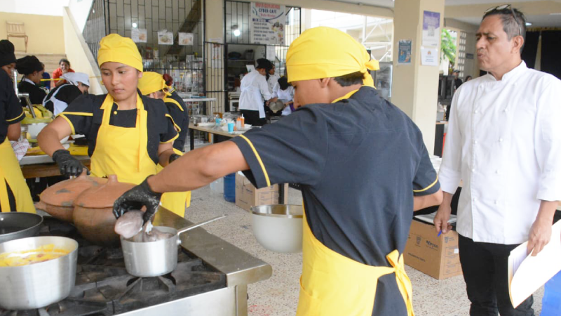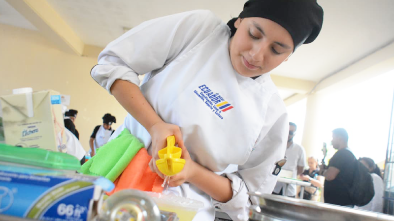 El evento se realizó en la Universidad Laica Eloy Alfaro de Manabí, extensión Bahía de Caráquez y contó con la participación de estudiantes de Bachillerato Técnico de 6 instituciones educativas de las provincias de Manabí y Galápagos, quienes demostraron sus habilidades, destrezas e innovación culinaria como parte de un intercambio pedagógico que fortalece la formación técnica y profesional de los jóvenes.