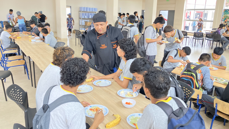 Un padre de familia encontró empleo y mejoró los hábitos alimenticios de su familia con el nuevo modelo de alimentación implementado en dos planteles de Guayaquil