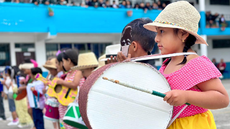 La conmemoración incluyó danzas, dramatizaciones y amorfinos, en los que estudiantes y docentes dieron vida a expresiones propias de la cultura montubia. Los niños y niñas, acompañados de sus maestros, lucieron coloridos trajes, sombreros e instrumentos musicales, que reflejan la identidad de este pueblo que es parte esencial del mosaico cultural ecuatoriano.
